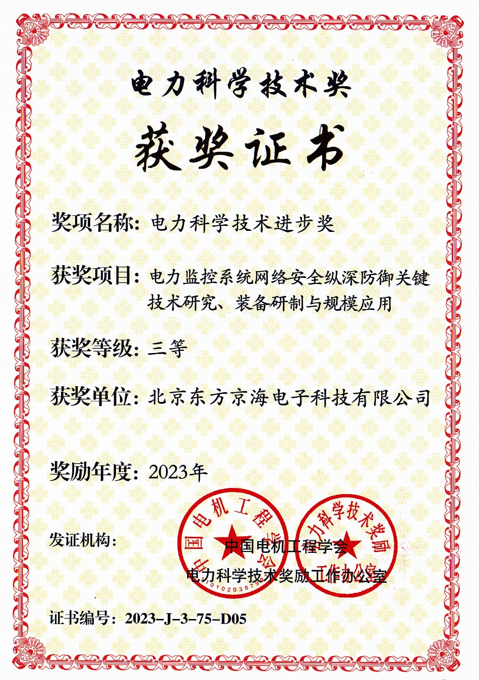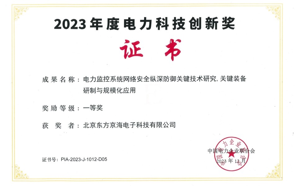 以產教融合為抓手,促進企業轉型升級。2023年京海公司與南網數研院協同合作,深度參與中國南方電網主持的”電力監控系統網絡安全縱深防御關鍵技術研究、裝備研制與規模應用“項目,并獲得了“電力創新技術成果一等獎、中國南方電網公司科技進步二等獎、中國電力科學技術獎科技進步三等獎” 三大科技成果獎。
